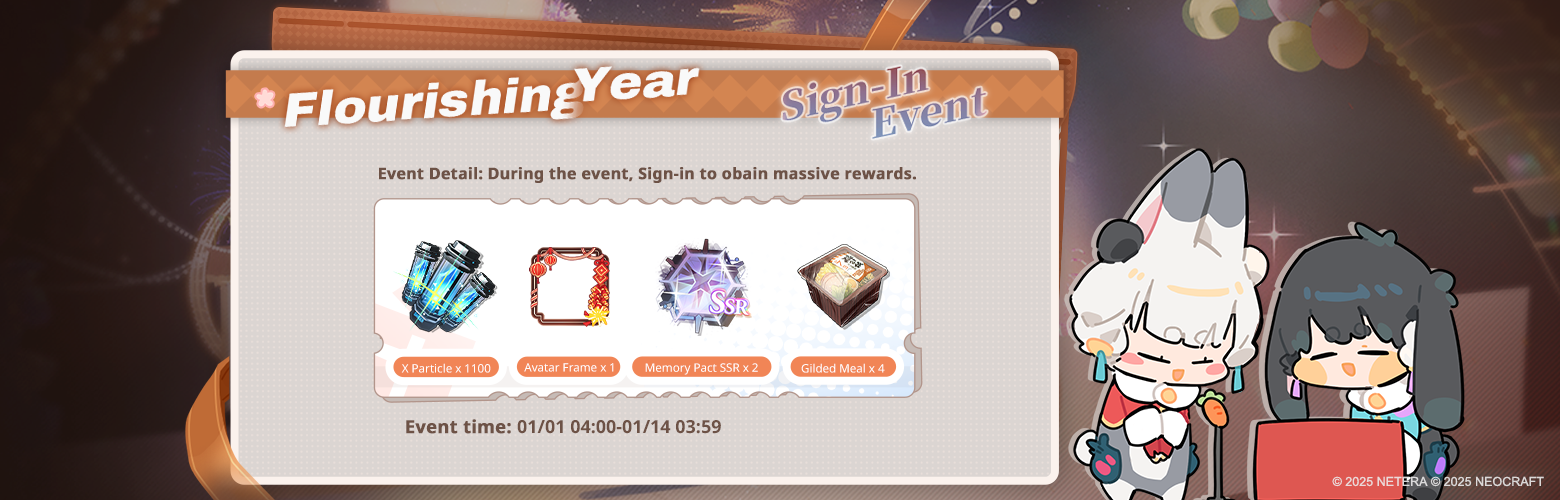 DETAILS: During the event, sign-in to receive massive rewards including Particle x1100, Avatar Frame x10, Memory Pact SSR x2, and Gilded Meal x4.