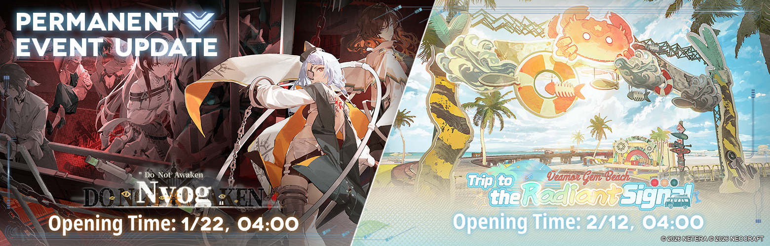 DETAILS: Previous themed events will gradually become permanently available in the Event Center after a certain time. Use a [Replay Key] to unlock them forever! V 2.3 update: [Do Not Awaken Nyog] & [Trip to the Radiant Signal]